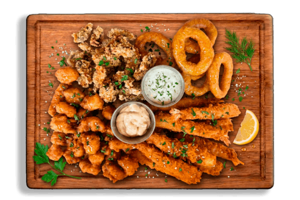 Склад: хрусткі креветки у золотистій паніровці з ніжним морським м’ясом усередині та пікантним солодким соусом чилі